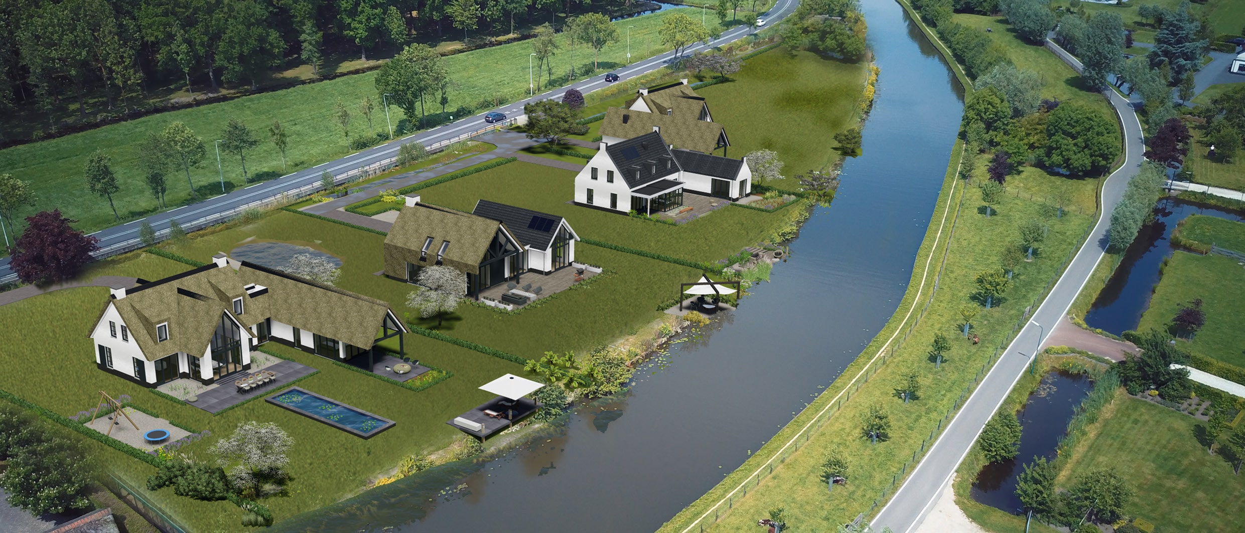 Op het terrein van een voormalig tuincentrum in Woerden zijn 5 riante kavels ontwikkelt met een diversiteit aan woningtypes.